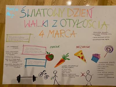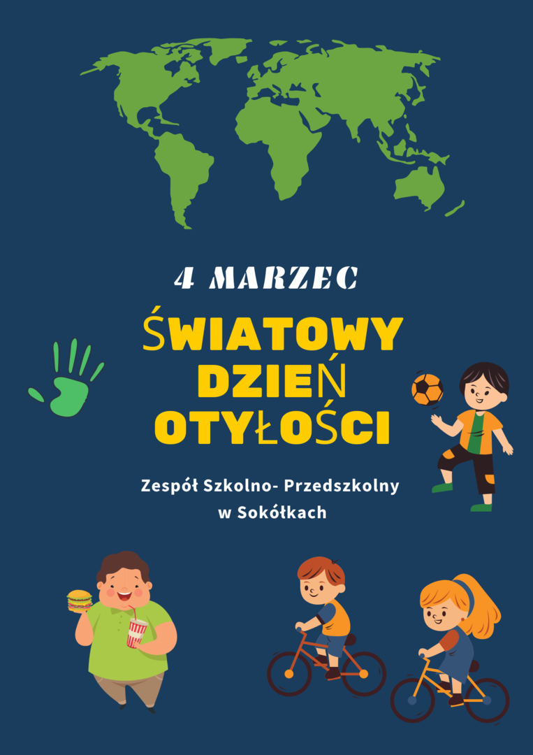 Problem otyłości i nadwagi dotyczy 10 proc. dzieci i młodzieży na świecie. Szacuje się, że do 2025 r. będzie 177 milionów 5 – 17 latków z nadwagą oraz 91 milionów z otyłością. Według Światowej Organizacji Zdrowia, w Europie otyłość dotyka przeciętnie jednego na trzech chłopców i jedną na pięć dziewczynek w wieku od sześciu do dziewięciu lat. Tak szybkie tępo wzrostu przyczynia się do wzrostu liczby zachorowań na choroby związane z otyłością. Odnosząc się do tempa wzrostu otyłości przewiduje się, że w 2025 r. około 12 milionów dzieci będzie miało nieprawidłową tolerancję glukozy, 4 miliony zachoruje na cukrzycę typu drugiego, 27 milionów będzie miało nadciśnienie, a u 38 milionów dojdzie do stłuszczenia wątroby lub nagromadzenia tłuszczu w tym organie. 4 marca 2021r. w Zespole Szkolno-Przedszkolnym w Sokółach w sposób szczególny poświęcony był profilaktyce prozdrowotnej. Uczniowe klas starszych wspólnie z nauczycielelami wychowania fizycznego spędzali ten czas aktywnie. Pomimo pandemii uczniowie podejmowali różnego rodzaju aktywności. Zwracali uwagę na zdrowe odżywianie i spożywanie odpowiedniej ilości wody. Przez cały dzień prowadzili dzienniczki aktywności fizycznej. Przygotowywali plakaty o tematyce zdrowotnej oraz prezentację multimedialną. Ogłoszony został chellenge na ,, Nawadniamy swój organizm". Uczniowie klas młodszych uczestniczyli w porannej rozgrzewce, tańczyli Zumbę. Mierzyli wskaźnik BMI. Wysłuchali prelekcji na temat roli wody w organiźmie człowieka. Wspólnie ze swoim wychowawcami przygotowywali zdrowe drugie śniadanie oraz koktajle, spacerowali po okolicy.
