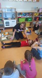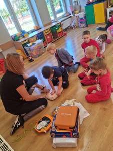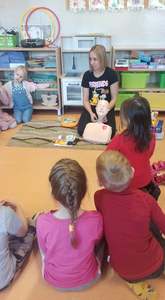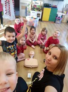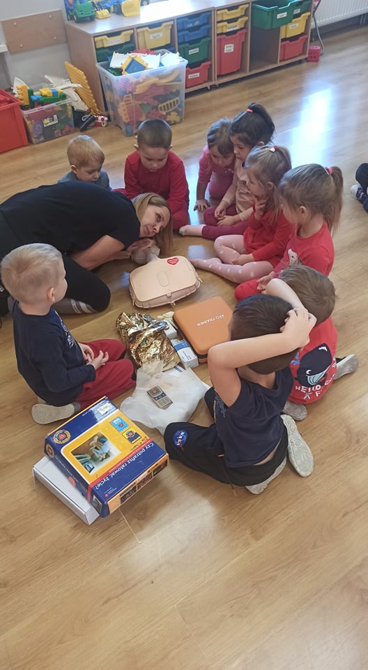 Obchody Międzynarodowego Dnia Numeru Alarmowego 112 przypadały 11 lutego. Spotkanie w grupach przedszkolnych miało na celu utrwalenie numerów alarmowych służb specjalnych. Dzieci dowiedziały się, jak połączyć się z dyspozytorem numeru alarmowego i jak prawidłowo przeprowadzić rozmowę. Mogły zobaczyć do czego służy automatyczny defibrylator AED i jak prawidłowo przeprowadzić RKO u osoby dorosłej. Poznały pozycję boczną bezpieczną.