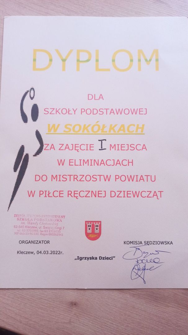 4 marca 2022 r. odbyły się Eliminacje do Mistrzostw Powiatu w Piłce Ręcznej Dziewcząt (rocznik 2009 i młodsze). Dziewczęta reprezentujące szkołę zagrały dwa mecze na wysokim poziomie, wygrywając: Sokółki 5-0 Golina, Sokółki 4-0 Kleczew.