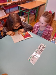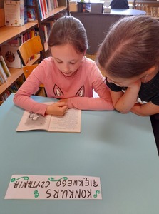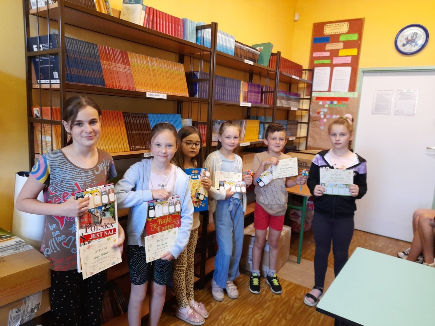 W naszej bibliotece szkolnej odbył się konkurs pięknego czytania dla uczniów klas II - III. Wybór tekstu do czytania dotyczył baśni Andersena, które wylosowano spośród trzech innych książek. Do konkursu zgłosiło się 6 uczniów, którzy z wielkim zaangażowaniem przystąpili do wykonania zadania. Szczególną uwagę należy zwrócić na to, iż dzieci głośno i wyraźnie czytały przydzielony fragment tekstu. I tak pierwsze miejsce zajęła Łucja Woźniak z klasy III, drugie miejsce Iga Janiak również z klasy III, a trzecie miejsce otrzymała Amelia Kałuża z klasy II. Dwa wyróżnienia należały do Mai Kropidłowskiej i Franka Wadelskiego z klasy II. Udział w konkursie wzięła także Iga Zielewska z kl. II. Wszyscy uczestnicy otrzymali dyplomy, nagrody rzeczowe, a wyróżnieni książki.