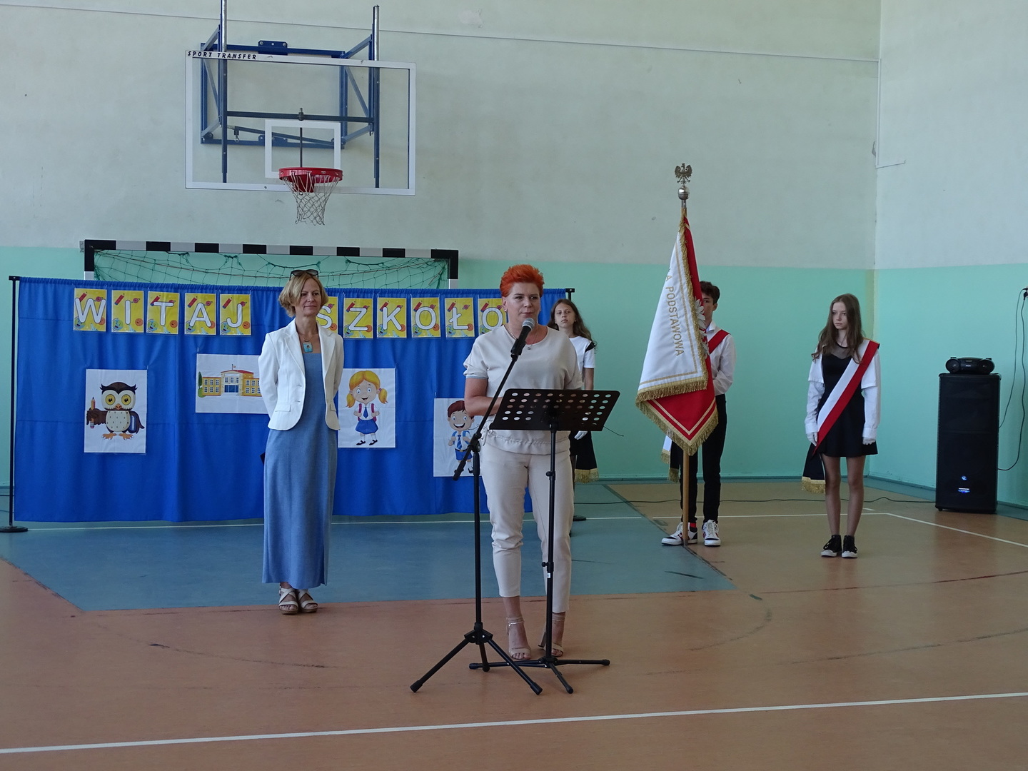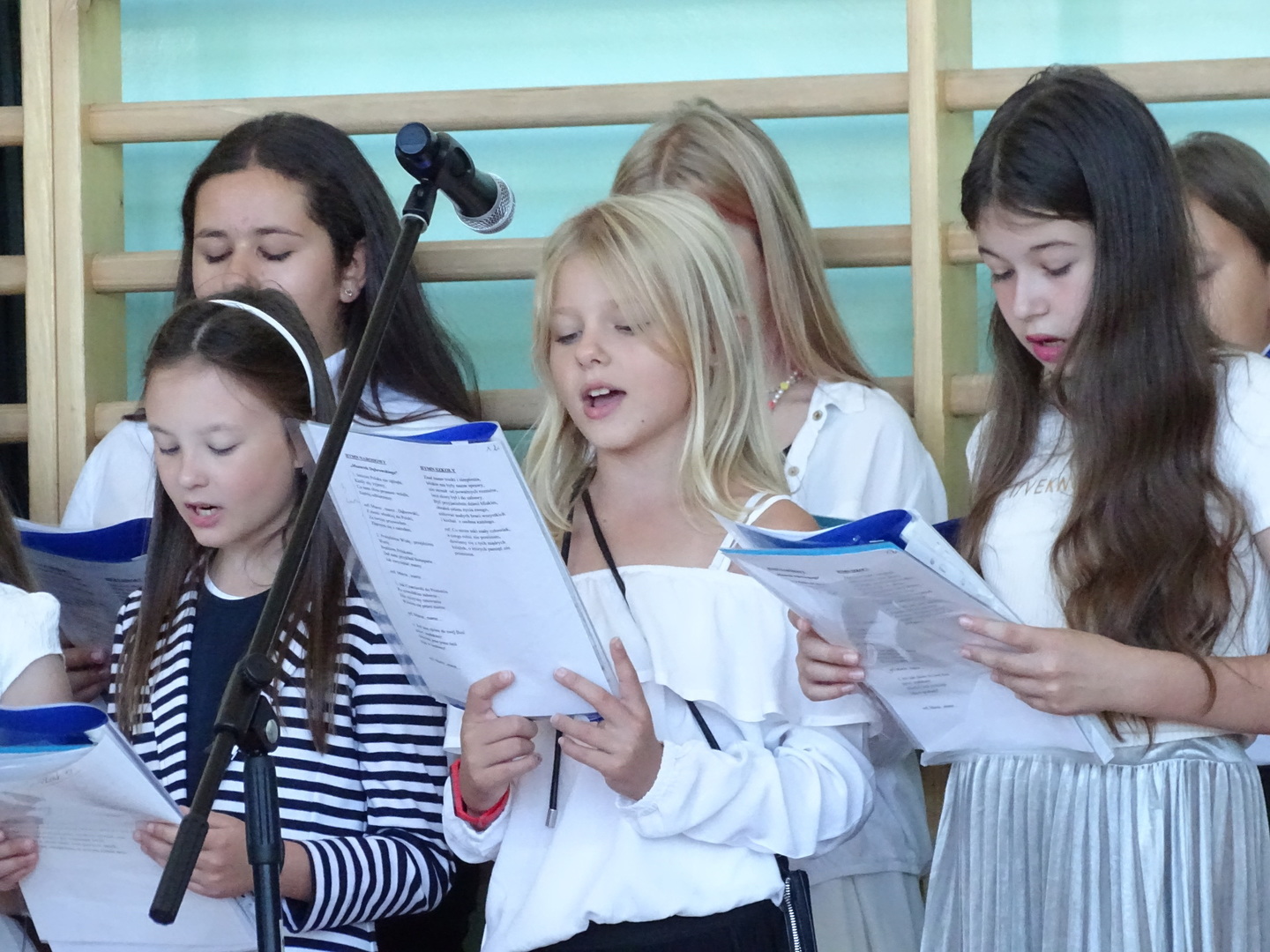 W czwartek 1 września 2022r. rozpoczęliśmy nowy rok szkolny. Podczas krótkiej uroczystości prowadzonej przez panią Małgorzatę Grzybowską uczniów witały: pani dyrektor Ewelina Nowicka oraz przewodnicząca Rady Rodziców - pani Katarzyna Giszter. Następnie krótki występ zaprezentowali uczniowie klasy trzeciej pod opieką pani Ilony Bylinowskiej-Dziurli. Uroczystość zakończył krótki koncert chóru szkolnego 'Sokoliki' pod kierownictwem pani Anety Nierychłej-Działak. Po uroczystości uczniowie udali się do klas na spotkania wychowawcami. Dzieci przedszkolne spotkały się podczas zajęć integrujących w salach przedszkola.