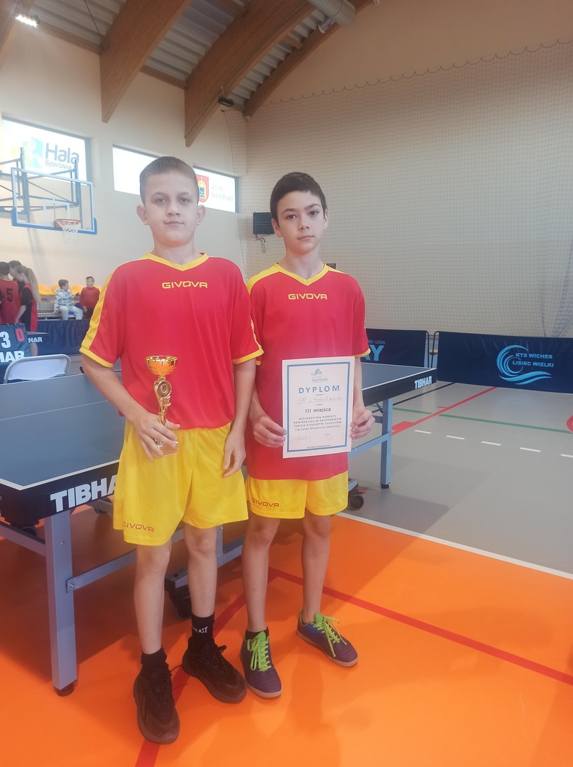 28 października 2022r. odbyły się Powiatowe Drużynowe Mistrzostwa w Tenisie Stołowym Chłopców (Igrzyska Młodzieży Szkolnej). Uczniowie naszej placówki zajęli III miejsce. Szkołę reprezentowali Bartosz Łubik (8b) oraz Adam Paszak (8a). Gratulujemy i życzymy kolejnych sportowych sukcesów!