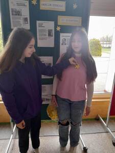 W dniach od 19 do 25 kwietnia klasy I-VIII wzięły udział w akcji Żonkile zorganizowanej w ramach obchodów 80 rocznicy wybuchu powstania w getcie warszawskim. By podkreślić wyjątkowy charakter tego dnia - 19 kwietnia, wszyscy uczniowie przypięli własnoręcznie przygotowane papierowe żonkile, które wcześniej zostały wykonane na zajęciach plastycznych w klasach IV - VII. To kwiaty, które symbolizują pamięć i nadzieję. Wręczano je również nauczycielom i pozostałym uczniom przypominając o rocznicy powstania. W naszej szkole uczniowie pod kierunkiem wychowawców i zainteresowanych nauczycieli zapoznali się z bardzo ciekawymi materiałami dotyczących wspomnień o ważnych wydarzeniach historycznych. Starsi zobaczyli animację Zdążyć przed Panem Bogiem i przeprowadzili pogadankę na w/w tematy. Trochę młodsi wysłuchali opowiadania Takich dwóch jak nas trzech i pracowali z kartami pracy. Wspólnie dzieliliśmy się refleksjami na temat przeżyć bohaterów opowiadania o czasie II wojny światowej. Zawsze towarzyszyło nam hasło “Łączy nas pamięć”.