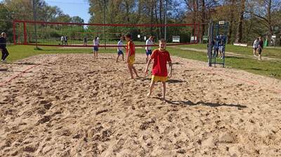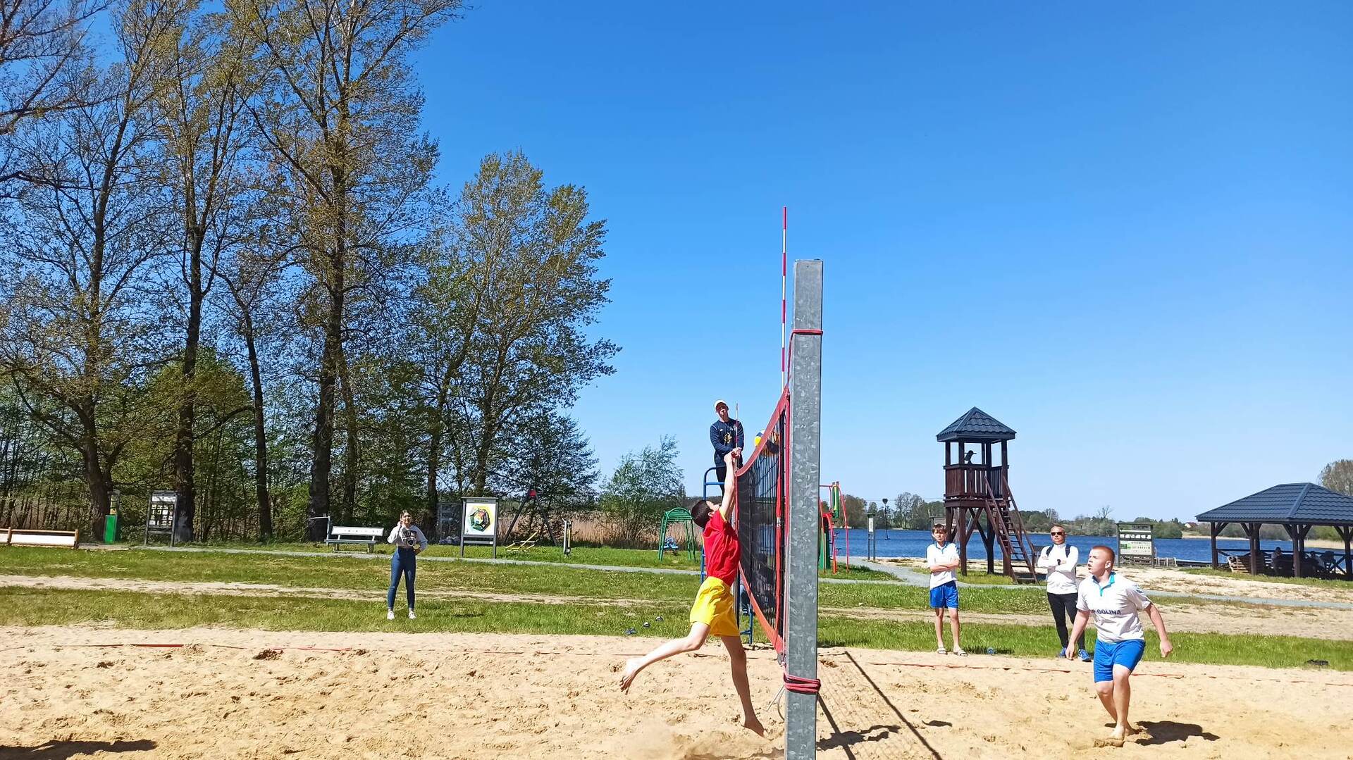 W dniu 9.05.2023r. nasi uczniowie Adam Paszak (kl. VIIIa), Bartosz Łubik (kl. VIIIb), Mateusz Galiński (kl.VII) wzięli udział w turnieju plażowej piłki siatkowej. Chłopcy po wyrównanej grze zajęli V miejsce. Był to etap powiatowy. Zdobywamy kolejne cenne doświadczenie. Brawo!