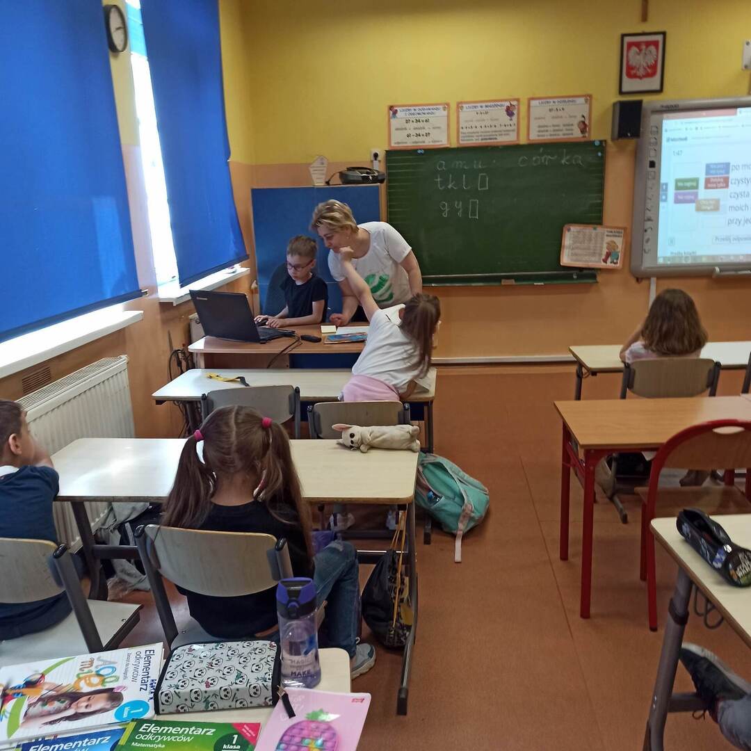 26 maja 2023r. odbyło się uroczyste pasowanie na czytelnika uczniów klasy pierwszej. Dzieci poznały podstawowe pojęcia związane z biblioteką oraz życzenia - prośby książki. Po uroczystym ślubowaniu otrzymały dyplomy i zakładki do książki. W bibliotece szkolnej zapoznały się z zasadami korzystania z księgozbioru i po raz pierwszy mogły wypożyczyć wybraną przez siebie książkę.