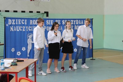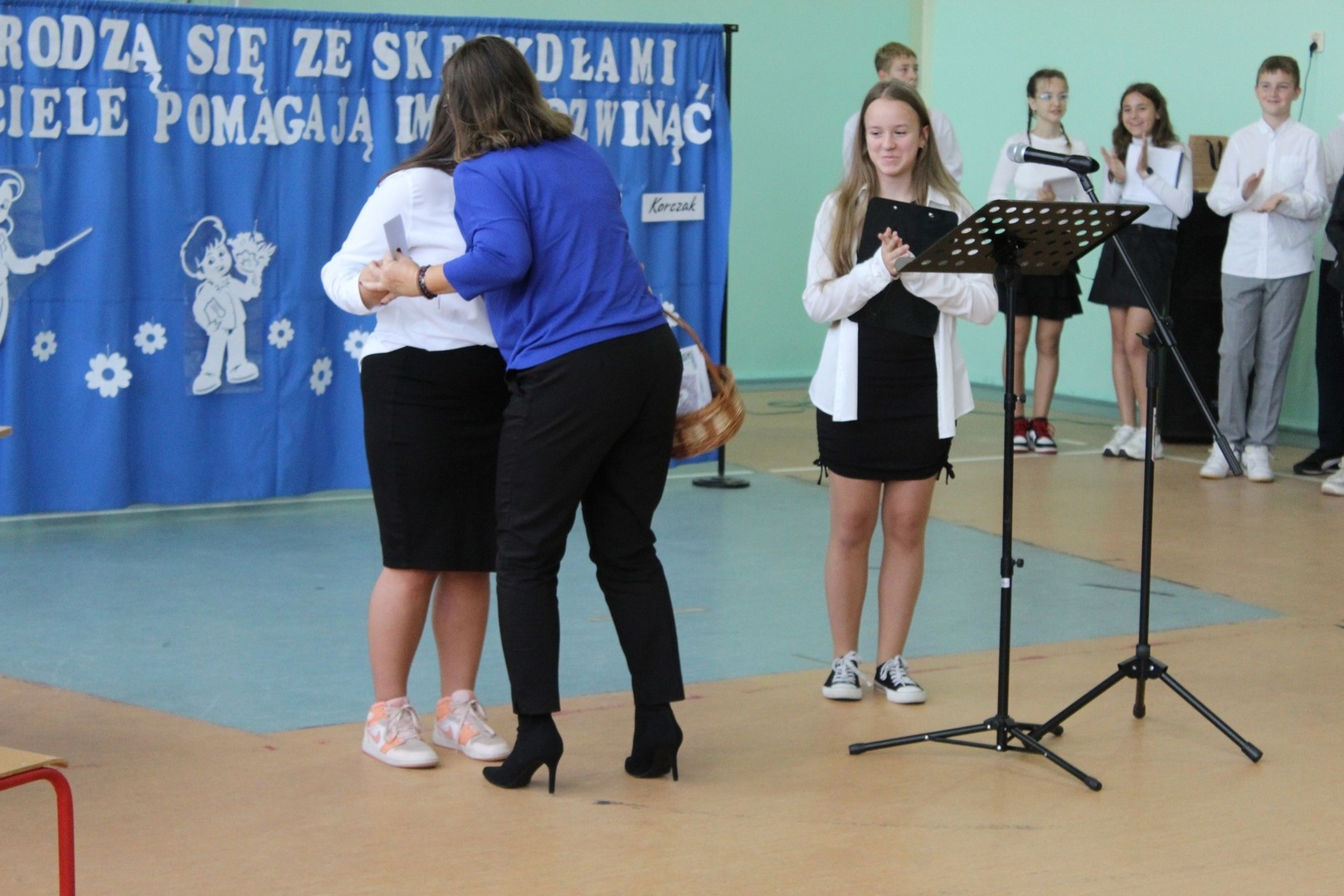 Dzisiejszy dzień był dniem szczególnym dla uczniów, nauczycieli i pracowników obsługi ZSP w Sokółach. Mieliśmy okazję świętować Dzień Patrona i Dzień Edukacji Narodowej. W przemówieniu pani Dyrektor Ewelina Nowicka podziękowała wszystkim nauczycielom za wkład pracy włożony w codzienną naukę i wychowanie młodego pokolenia. Poinformowała także, że nagrodę Wójta Gminy Kazimierz Biskupi otrzymała Pani Małgorzata Grzybowska oraz przyznała nagrody dyrektora. Otrzymali je nauczyciele: Aneta Nierychła-Działak, Małgorzata Nowaczyk, Sławomir Spławski, Agata Szczepaniak oraz Paulina Winkiel. Ciepłe słowa skierowała również do nas przewodnicząca Rady Rodziców Pani Natalia Woźniak, życząc wszystkim nauczycielom satysfakcji z wykonywanego zawodu, a dzieciom sukcesów edukacyjnych. Przepełniony radością i humorem występ artystyczny umilił czas uczestnikom akademii. Każdy z nauczycieli był nominowany w swojej kategorii dotyczącej wykonywanego zawodu.