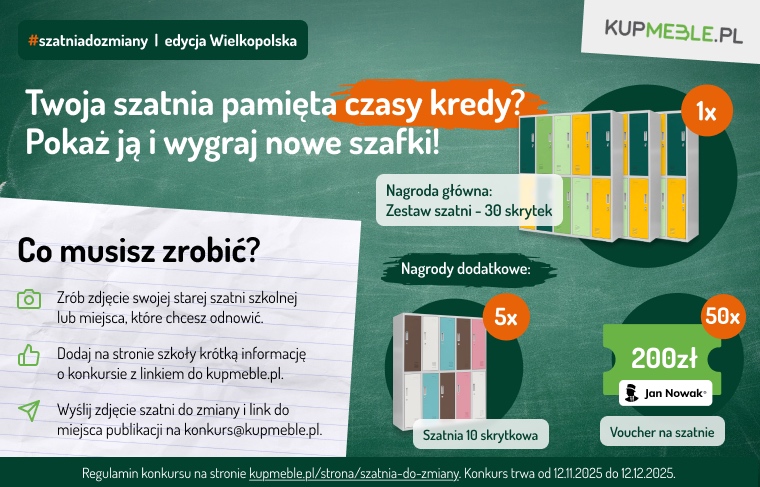 Czas na zmianę! Nasza szkoła dołączyła do akcji Szatnia do zmiany, organizowanej przez Kupmeble.pl – mamy nadzieję, że to właśnie u nas pojawią się nowe szafki!
