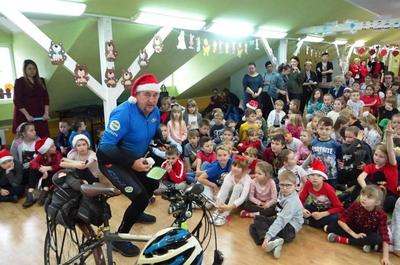 W dniu 6 grudnia 2018r. Zespół Szkolno-Przedszkolny w Sokółkach odwiedzili wyjątkowi goście. Byli to członkowie Klubu Turystycznego PTTK Konin – Sekcja Turystyki Rowerowej CIKLO. Opowiedzieli nam o swoich przeżyciach, dokonaniach, o radości z aktywności fizycznej i kontaktu z przyrodą oraz o potrzebie wspólnego działania. Przypomnieli nam co jest najważniejsze podczas jazdy rowerem, w jaki sposób bezpiecznie zachować się na drodze. Przygotowali także dla dzieci różne gadżety, odblaski i słodkie niespodzianki. Spotkanie przebiegło w bardzo miłej atmosferze. Dziękujemy.