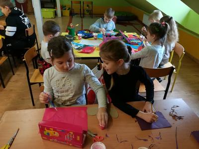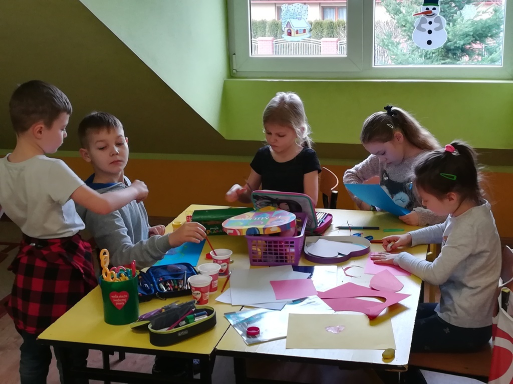 W naszej świetlicy Dzień Świętego Walentego upłynął w miłej atmosferze. Rozmawialiśmy o tym, że Walentynki to nie tylko święto zakochanych, ale także przyjaciół i bliskich. Wykonaliśmy szereg prac plastycznych, których motywem przewodnim było oczywiście czerwone serce. Układaliśmy życzenia, a następnie wypisaliśmy nimi własnoręcznie zrobione kartki walentynkowe. Ogłosiliśmy również konkurs plastyczny na najpiękniejszą Kartkę Walentynkową.