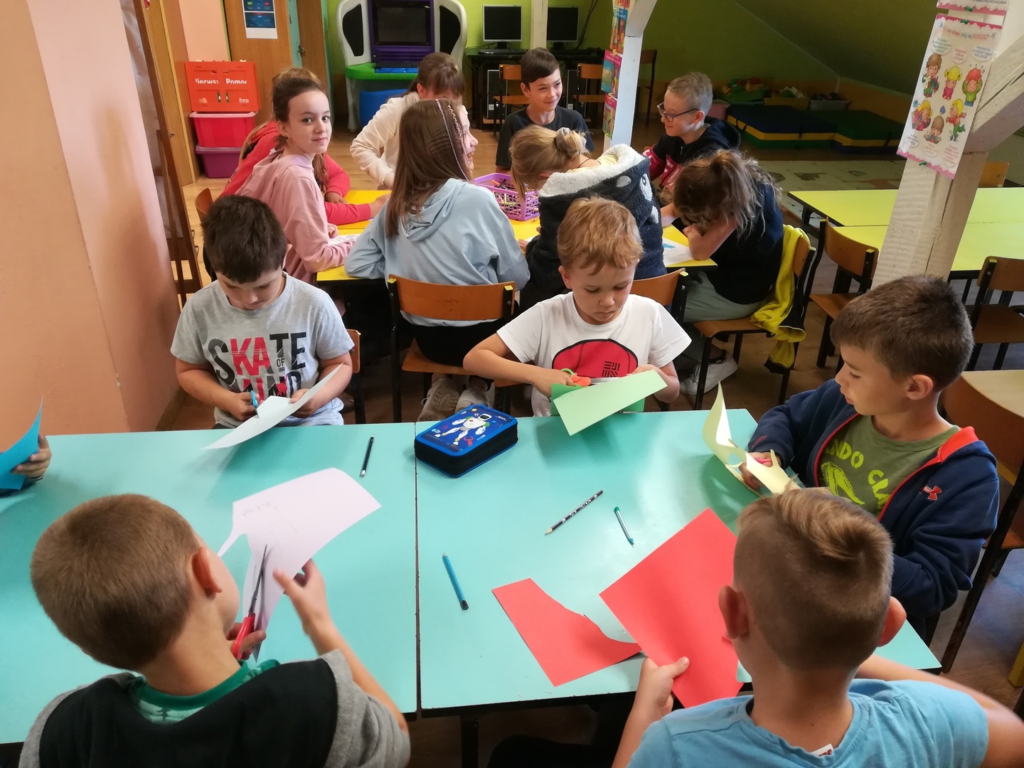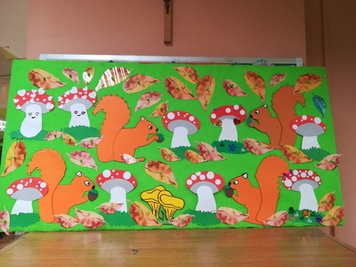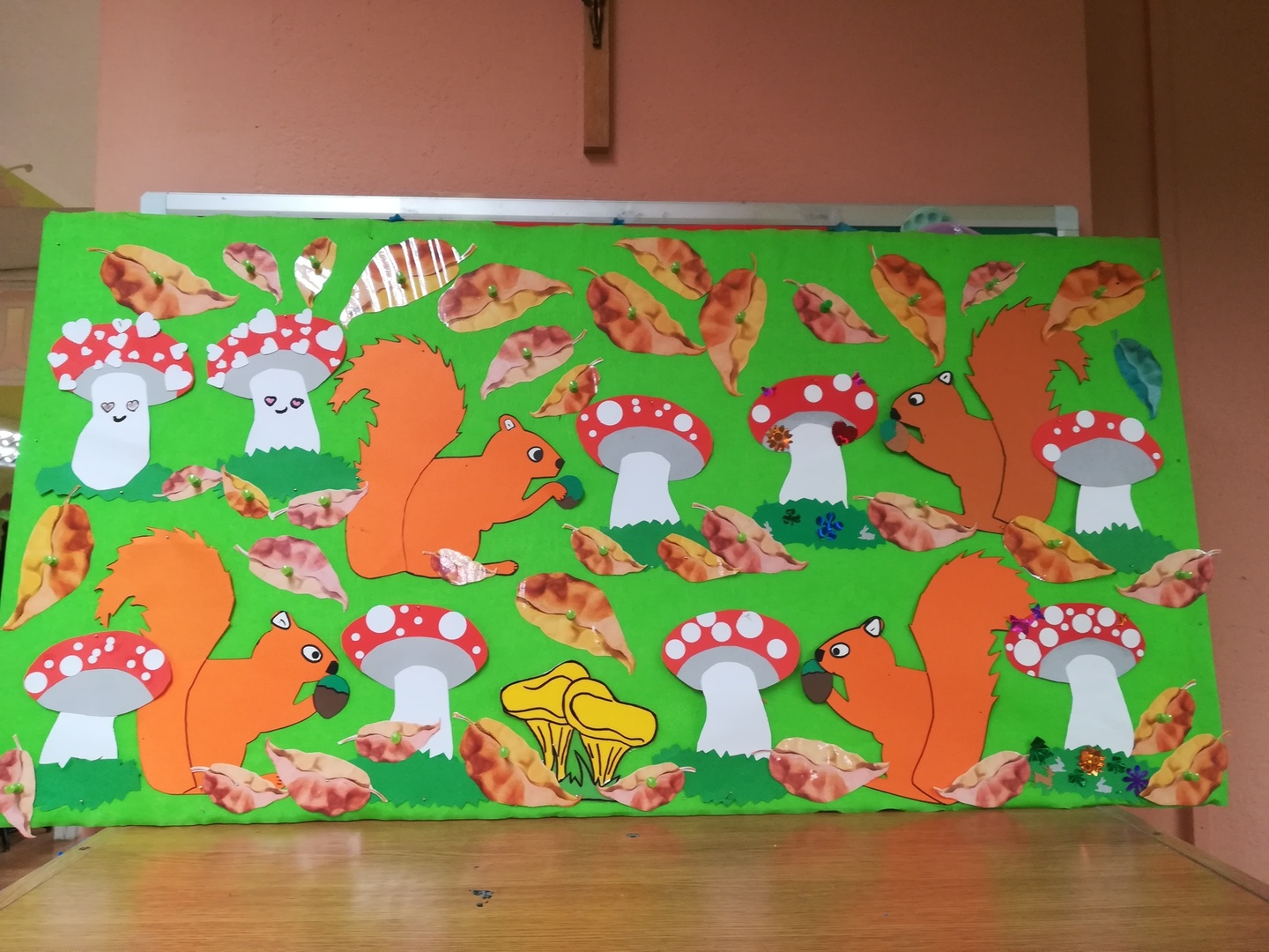 Nastała jesień. Świetliczaki z zapałem wykonały prace plastyczne związane z tematyką jesienną. Świetlicę zdobią piękne muchomorki, jeżyki, winogrona i drzewa.