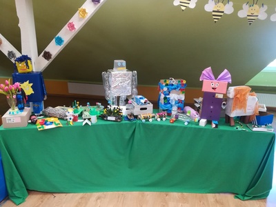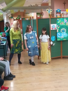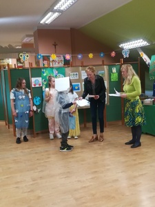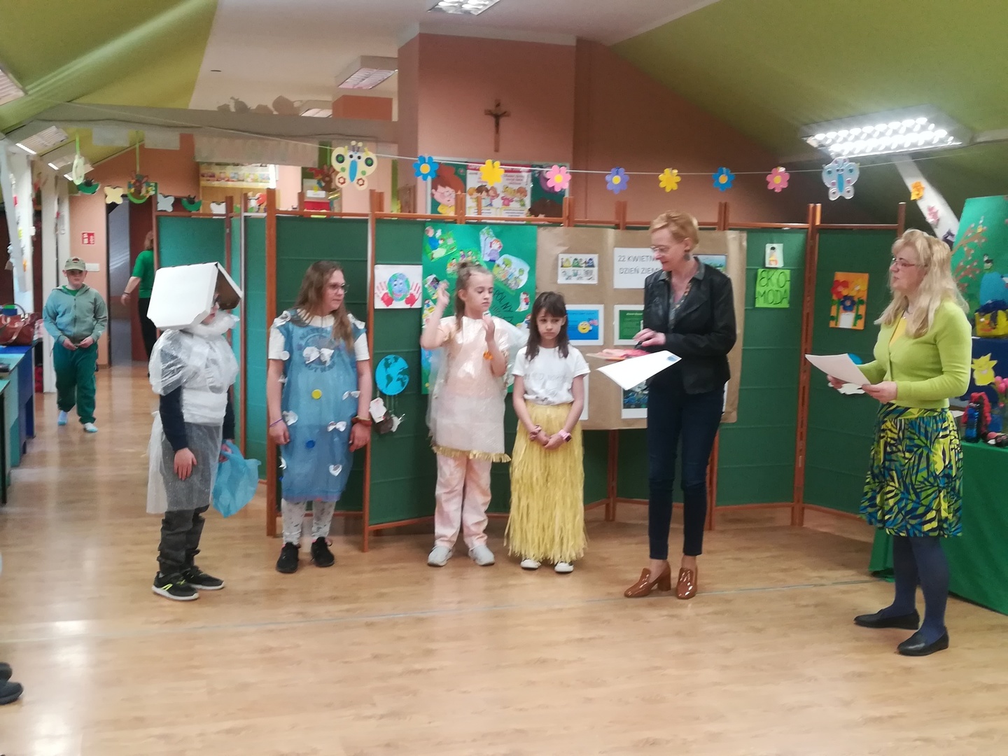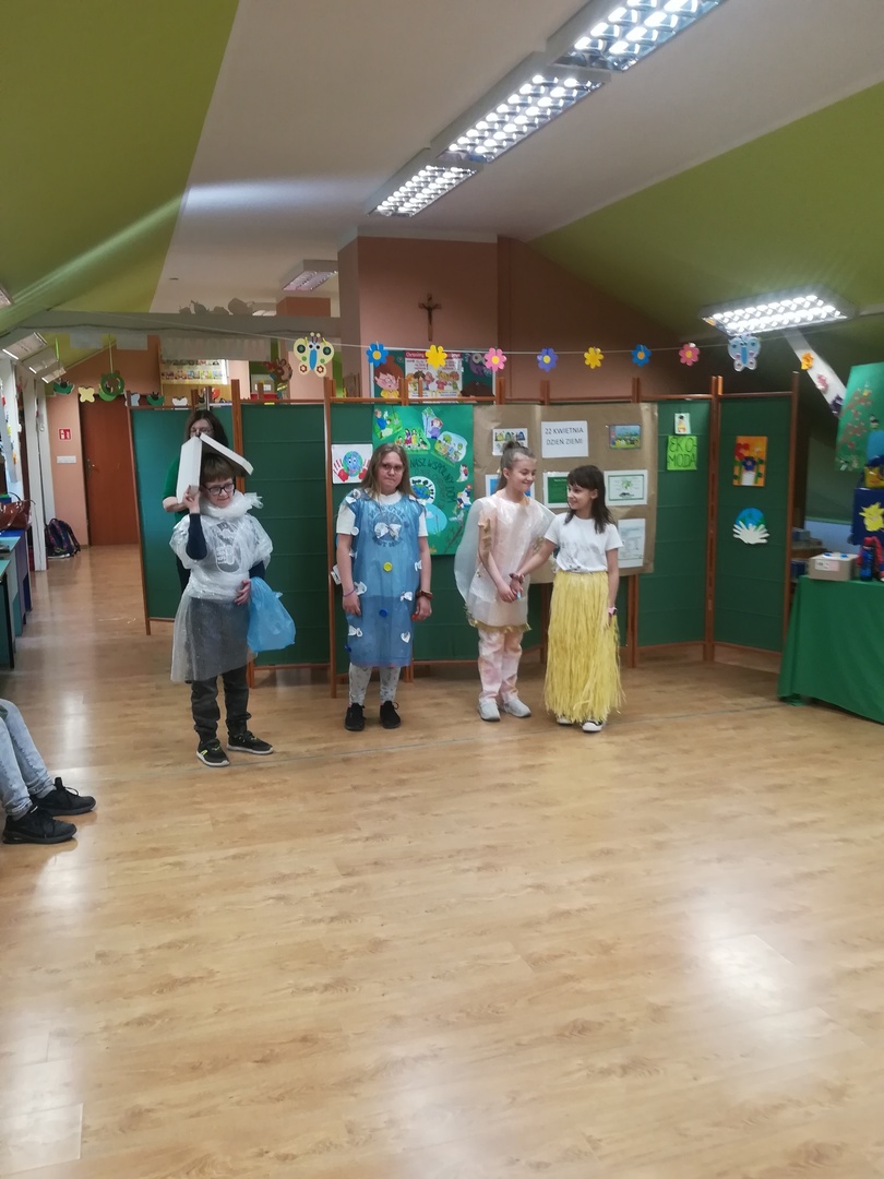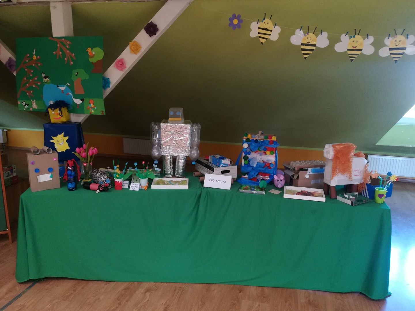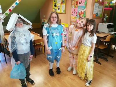 Kolejny raz w świetlicy szkolnej odbył się pokaz mody recyklingowej, „Eko – moda”. Do konkursu przystąpili uczniowie z klas I – IV: Zosia Wasiak , Krysia Budna , Iwo Tomczak, Oliwia Walna. Uczestnicy konkursu wykonali i zaprezentowali się w strojach z materiałów do recyklingu. W ruch poszły worki foliowe, folia bąbelkowa, papier, kartony, nakrętki, gazety. Znacznie więcej uczniów wzięło udział w konkursie „Eko – sztuka”. Uczniowie zaprezentowali swoje prace, były to między innymi: roboty, pojazdy (pociągi, czołgi), zwierzęta (koń, myszy, świnka, krokodyl, tygrys), kwiaty, torba, brelok, lalka, skrzat itp. Uczniowie wykazali się wielką wyobraźnią. Naszą uroczystość ubarwił również swoim wystąpieniem chór. Dzieci zaprezentowały piosenki o tematyce ekologicznej. Dziękujemy wszystkim za udział. Jesteśmy dumni, że mamy tak wspaniałych i kreatywnych uczniów. Wszyscy biorący udział w konkursach zostaną nagrodzeni.