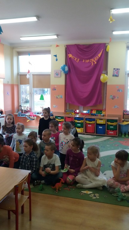 26.02.2019r. w przedszkolu w Sokółkach odbył się po raz pierwszy Dzień Dinozaura. Pomysłodawcą dego dnia była Pani Milena Wadelska - mama naszego przedszkolaka Frania, który jest zarażony pasją do prehistorycznych stworzeń. W tym dniu dzieci z obu grup wzięły udział w grach i zabawach mających na celu przybliżenie im dinozaurów. Nad całości imprezy czuwały p. Nina Kucharska oraz p. Klaudia Lisiewska. Mamy ogromną nadzieje, że w przyszłym roku dzieci wezmą chętnie udział w kolejnym Dniu Dinozaura.