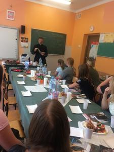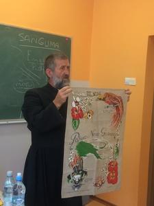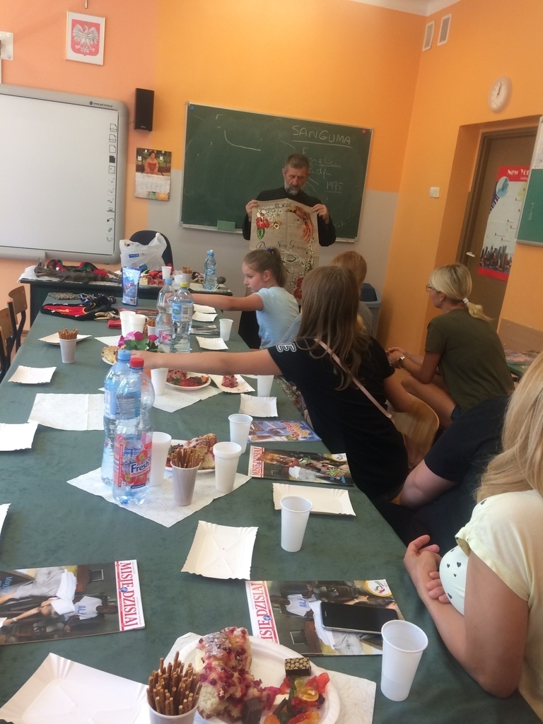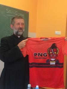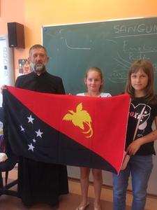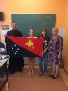 27 czerwca do naszej szkoły przybył z dalekiego Kraju - z Papui Nowej Gwinei - Misjonarz Świętej Rodziny Ksiądz Stanisław Banasiński. Spotkanie trwało prawie 4 godziny. Opowieściom historyczno-geograficznym oraz innym ciekawostkom przysłuchiwaliśmy się z zapartym tchem. Misjonarz obdarował Ognisko Misyjne flagą Papui oraz innymi gadżetami misyjnymi objaśniając ich znaczenie. Mogliśmy zadawać pytania, a nasz Gość z radością na nie odpowiadał. Odmówił również modlitwę w języku jego parafian. Zaśpiewał nawet piosenkę w ich języku.